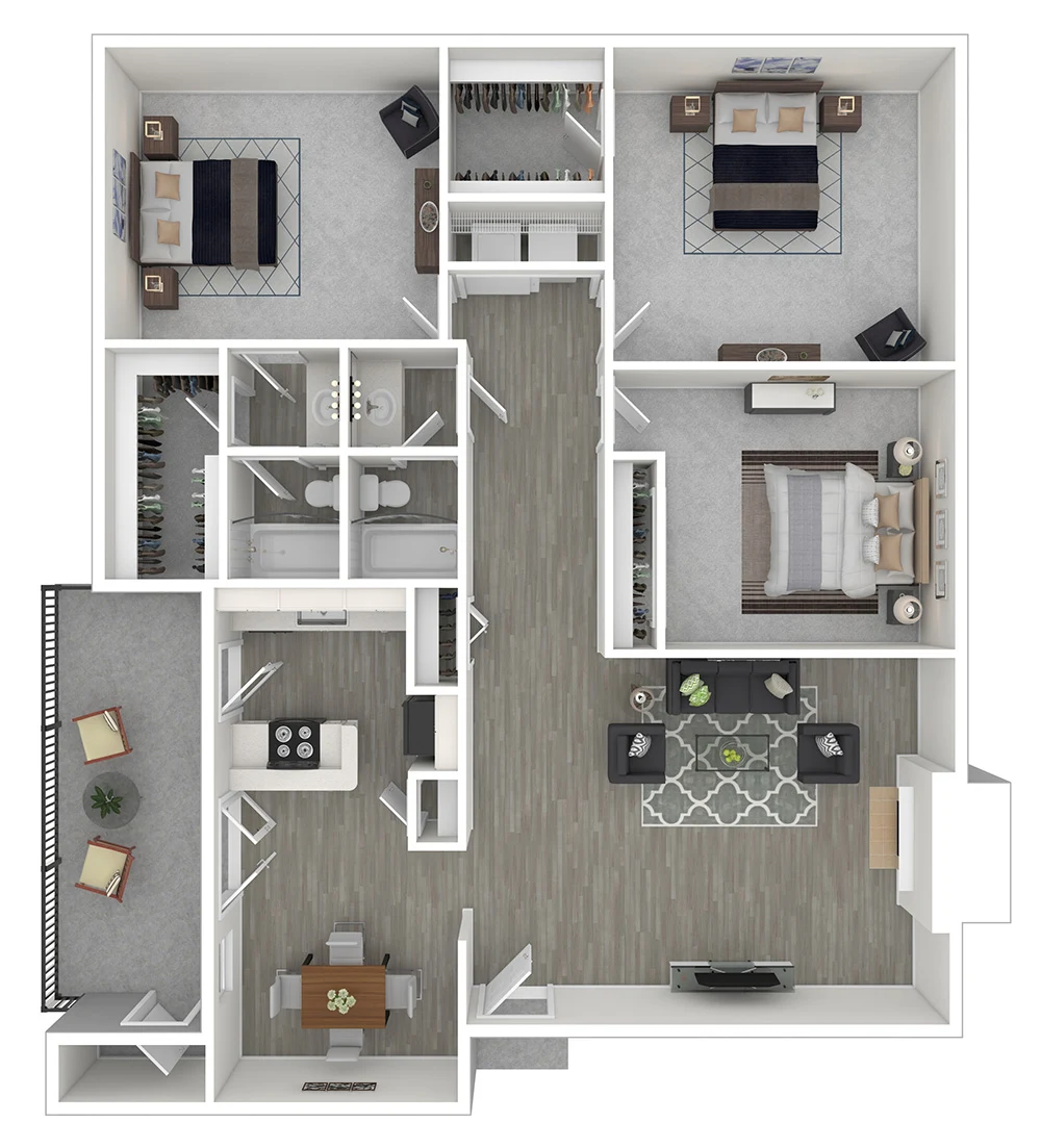 This is our three bedroom, two bathroom floorplan featuring 1,212 square feet of living space and a cozy fireplace. Please call a member of our friendly leasing staff for more information!
